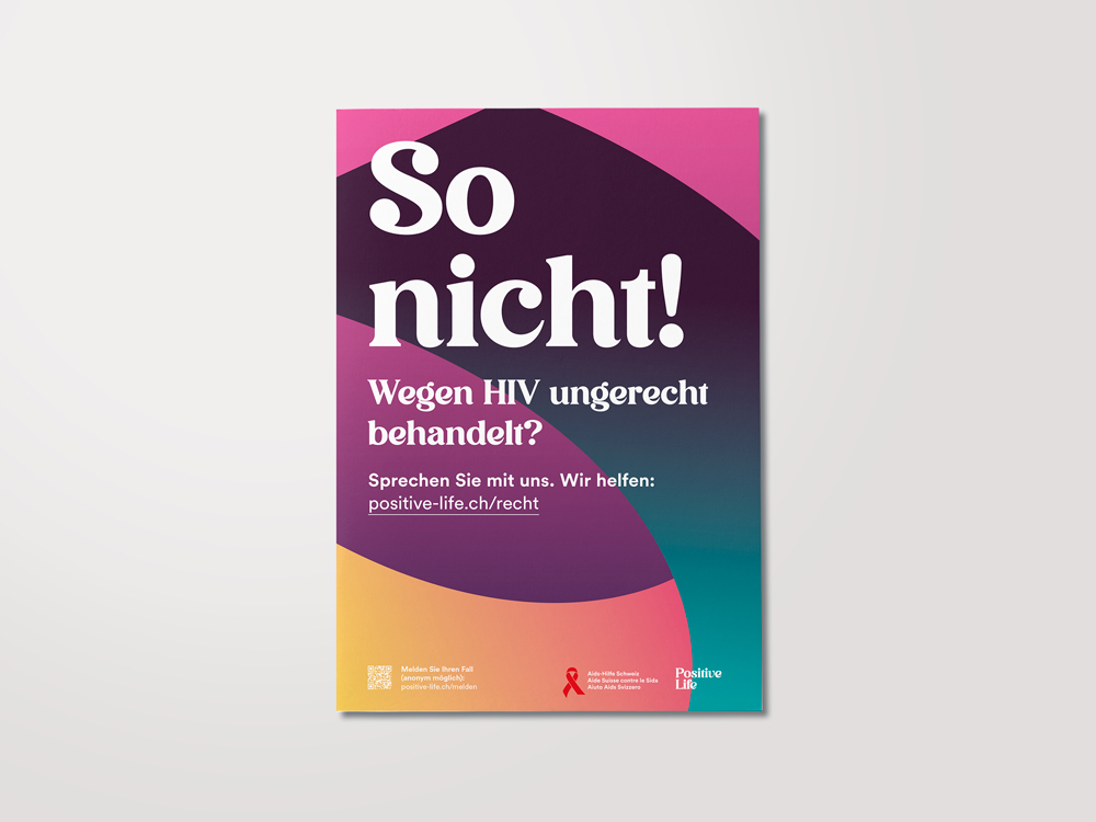 Plakat für Bewerbung der rechtlichen Unterstützung für Menschen mit HIV und Meldestelle für Diskriminierungen wegen HIV