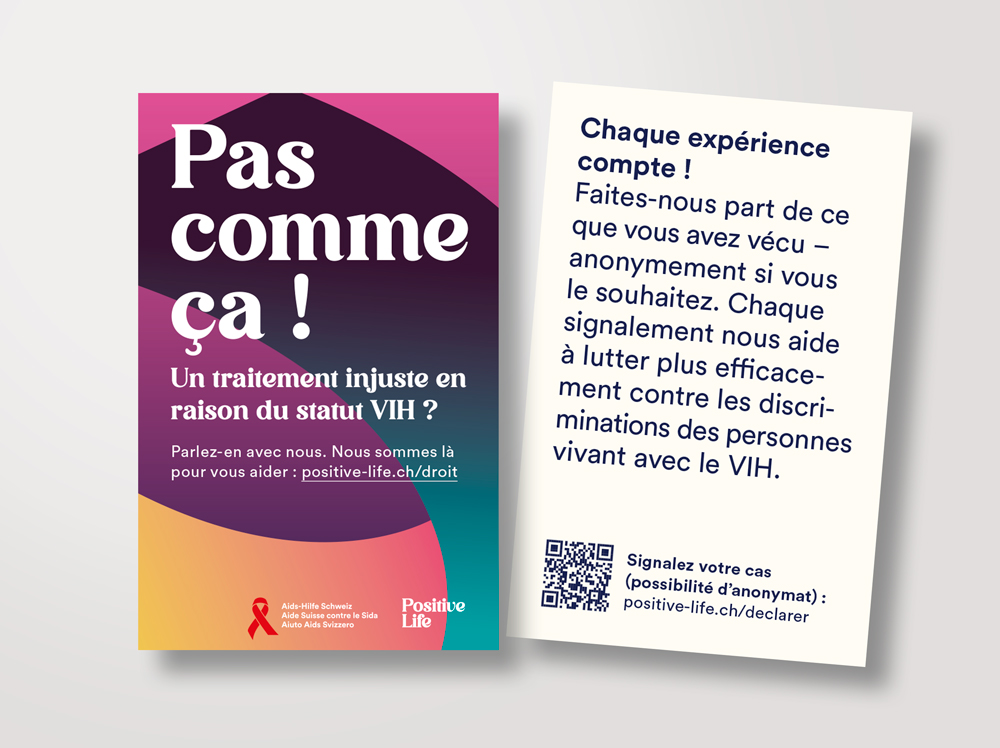 Mini-flyer pour promouvoir l'aide juridique pour les personnes vivant avec le VIH et le service de signalement des discriminations liées au VIH